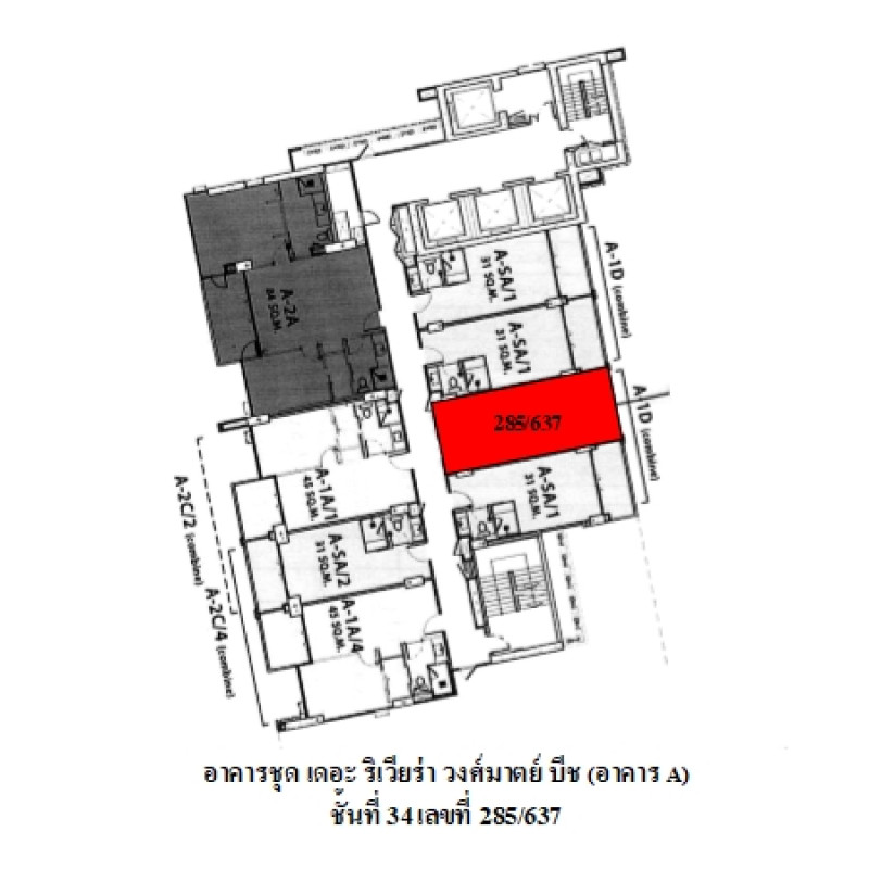 ห้องชุดพักอาศัย เลขที่ 285/637 ชั้นที่ 34 อาคารเลขที่ เอ ชื่ออาคารชุดเดอะ ริเวียร่า วงศ์อมาตย์ บีช ทะเบียนอาคารชุดเลขที่ 16/2560อัตราส่วนแห่งกรรมสิทธิ์ในทรัพย์ส่วนกลาง : 31.90 ส่วน ใน 38,938.11 ส่วนข้อมูลอาคารชุด : อาคารสูง 43 ชั้น มีจำนวนห้องชุดรวม 478 ห้อง โดยโครงการฯ มีทั้งหมด 2 อาคารสิ่งอำนวยความสะดวกภายในอาคาร : ที่จอดรถ, ลิฟท์โดยสาร, สระว่ายน้ำ, ฟิตเนส, รปภ. 24 ชม., กล้องวงจรปิด และบัตรเข้า-ออก เป็นต้น