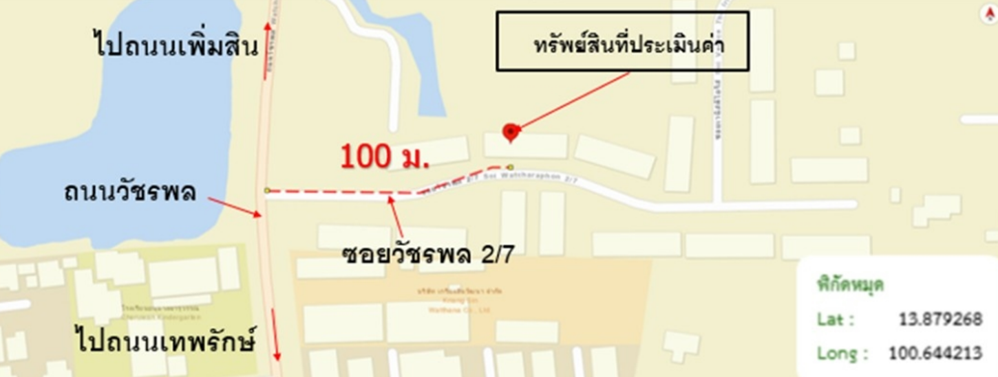 ศูนย์ข้อมูลฯ ได้ทำการตรวจสอบตำแหน่งที่ตั้งทรัพย์บนแผนที่ที่ปรากฎอยู่บนเว็บไซต์ โดยอาศัยข้อมูลจากแหล่งข้อมูลต่างๆ ที่เชื่อถือได้ เพื่อให้ตำแหน่งทรัพย์บนแผนที่ ใช้อ้างอิงท่านไปยังที่ตั้งของทรัพย์นั้นๆ โดยประมาณ ทั้งนี้ศูนย์ข้อมูลฯ ไม่สามารถยืนยันความถูกต้องของตำแหน่งทรัพย์ได้ ดังนั้น ทางศูนย์ข้อมูลฯ ขอสงวนสิทธิ์ไม่รับผิดชอบต่อข้อผิดพลาดทางตำแหน่งทรัพย์ที่เกิดขึ้นบนแผนที่ ผู้นำข้อมูลไปใช้พึงใช้วิจารณญาณและตรวจสอบตามความเหมาะสม