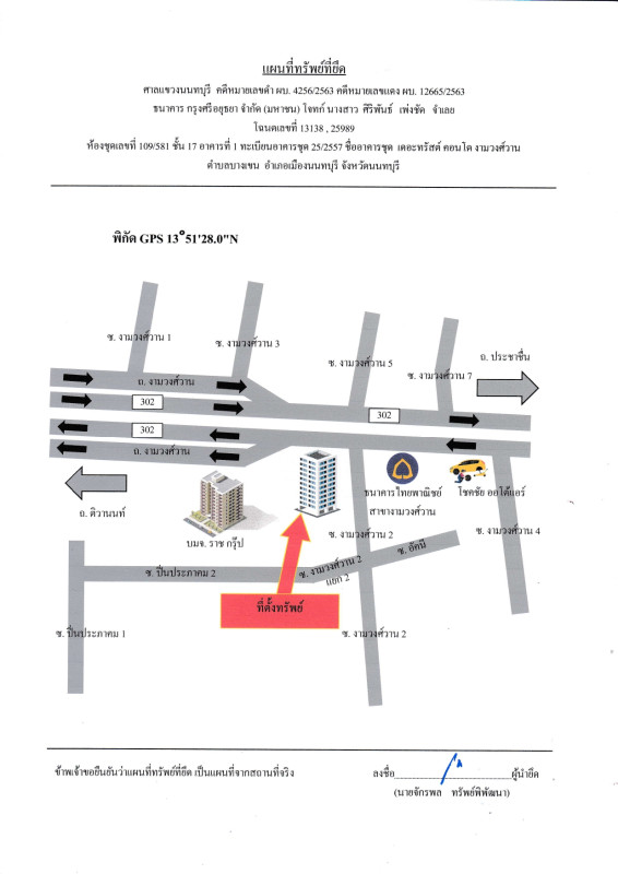 ศูนย์ข้อมูลฯ ได้ทำการตรวจสอบตำแหน่งที่ตั้งทรัพย์บนแผนที่ที่ปรากฎอยู่บนเว็บไซต์ โดยอาศัยข้อมูลจากแหล่งข้อมูลต่างๆ ที่เชื่อถือได้ เพื่อให้ตำแหน่งทรัพย์บนแผนที่ ใช้อ้างอิงท่านไปยังที่ตั้งของทรัพย์นั้นๆ โดยประมาณ ทั้งนี้ศูนย์ข้อมูลฯ ไม่สามารถยืนยันความถูกต้องของตำแหน่งทรัพย์ได้ ดังนั้น ทางศูนย์ข้อมูลฯ ขอสงวนสิทธิ์ไม่รับผิดชอบต่อข้อผิดพลาดทางตำแหน่งทรัพย์ที่เกิดขึ้นบนแผนที่ ผู้นำข้อมูลไปใช้พึงใช้วิจารณญาณและตรวจสอบตามความเหมาะสม