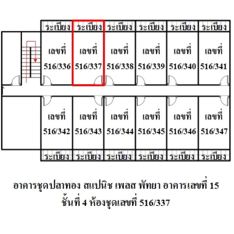 ห้องชุดพักอาศัย เลขที่ 516/337 ชั้นที่ 4 อาคารเลขที่ 15 ชื่ออาคารชุด ปลาทอง สแปนิช เพลส พัทยา ทะเบียนอาคารชุดเลขที่ 11/2535อัตราส่วนแห่งกรรมสิทธิ์ในทรัพย์ส่วนกลาง : 449 ส่วน ใน 26,540 ส่วนข้อมูลอาคารชุด : อาคารสูง 5 ชั้น มีจำนวนห้องชุดประมาณ 30 ห้อง/อาคาร โดยโครงการฯ มีทั้งหมด 10 อาคารข้อมูล ณ วันที่ 21 ก.พ. 68 ค่าส่วนกลางประมาณ 500.00 บาท/เดือน