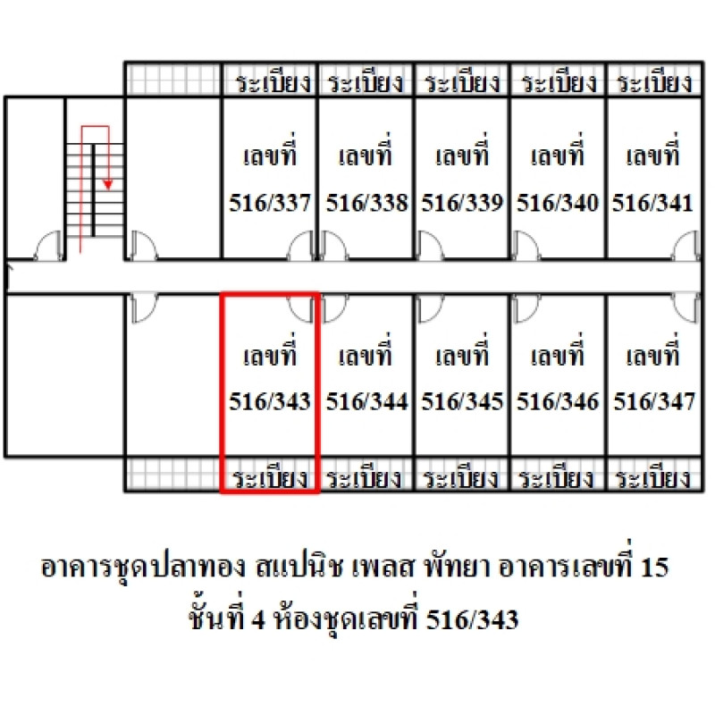 ห้องชุดพักอาศัย เลขที่ 516/343 ชั้นที่ 4 อาคารเลขที่ 15 ชื่ออาคารชุด ปลาทอง สแปนิช เพลส พัทยา ทะเบียนอาคารชุดเลขที่ 11/2535อัตราส่วนแห่งกรรมสิทธิ์ในทรัพย์ส่วนกลาง : 429 ส่วน ใน 26,540 ส่วนข้อมูลอาคารชุด : อาคารสูง 5 ชั้น มีจำนวนห้องชุดประมาณ 30 ห้อง/อาคาร โดยโครงการฯ มีทั้งหมด 10 อาคารข้อมูล ณ วันที่ 21 ก.พ. 68 ค่าส่วนกลางประมาณ 500.00 บาท/เดือน