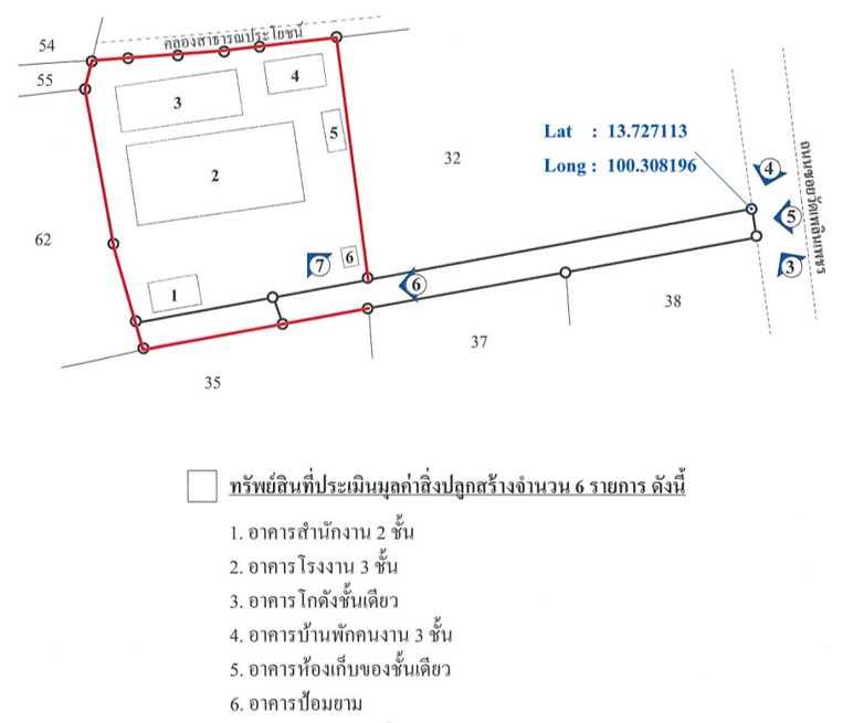 อาคารที่พักอาศัย 2 ชั้น อาคารโกดัง 3 อาคาร และอาคารบ้านพักคนงงาน