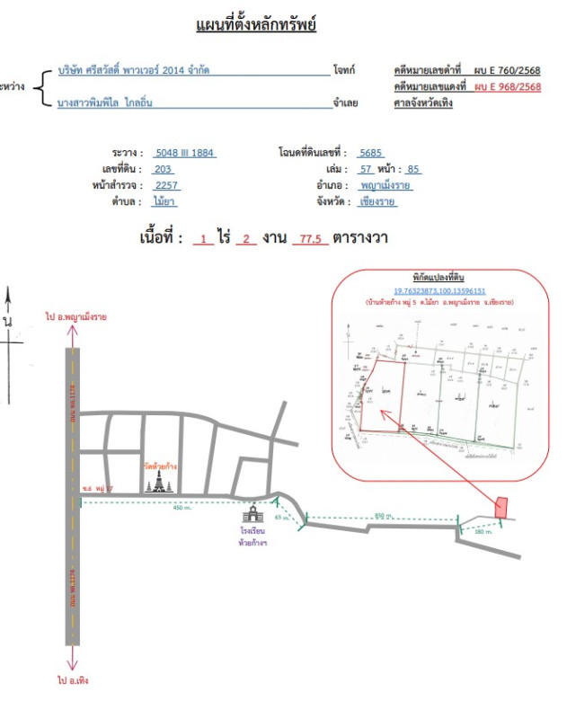ศูนย์ข้อมูลฯ ได้ทำการตรวจสอบตำแหน่งที่ตั้งทรัพย์บนแผนที่ที่ปรากฎอยู่บนเว็บไซต์ โดยอาศัยข้อมูลจากแหล่งข้อมูลต่างๆ ที่เชื่อถือได้ เพื่อให้ตำแหน่งทรัพย์บนแผนที่ ใช้อ้างอิงท่านไปยังที่ตั้งของทรัพย์นั้นๆ โดยประมาณ ทั้งนี้ศูนย์ข้อมูลฯ ไม่สามารถยืนยันความถูกต้องของตำแหน่งทรัพย์ได้ ดังนั้น ทางศูนย์ข้อมูลฯ ขอสงวนสิทธิ์ไม่รับผิดชอบต่อข้อผิดพลาดทางตำแหน่งทรัพย์ที่เกิดขึ้นบนแผนที่ ผู้นำข้อมูลไปใช้พึงใช้วิจารณญาณและตรวจสอบตามความเหมาะสม