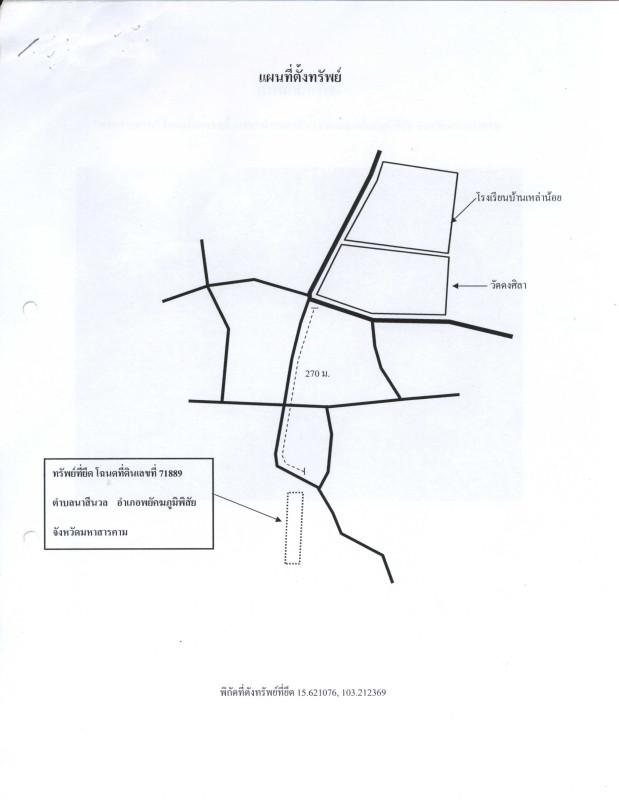 ศูนย์ข้อมูลฯ ได้ทำการตรวจสอบตำแหน่งที่ตั้งทรัพย์บนแผนที่ที่ปรากฎอยู่บนเว็บไซต์ โดยอาศัยข้อมูลจากแหล่งข้อมูลต่างๆ ที่เชื่อถือได้ เพื่อให้ตำแหน่งทรัพย์บนแผนที่ ใช้อ้างอิงท่านไปยังที่ตั้งของทรัพย์นั้นๆ โดยประมาณ ทั้งนี้ศูนย์ข้อมูลฯ ไม่สามารถยืนยันความถูกต้องของตำแหน่งทรัพย์ได้ ดังนั้น ทางศูนย์ข้อมูลฯ ขอสงวนสิทธิ์ไม่รับผิดชอบต่อข้อผิดพลาดทางตำแหน่งทรัพย์ที่เกิดขึ้นบนแผนที่ ผู้นำข้อมูลไปใช้พึงใช้วิจารณญาณและตรวจสอบตามความเหมาะสม