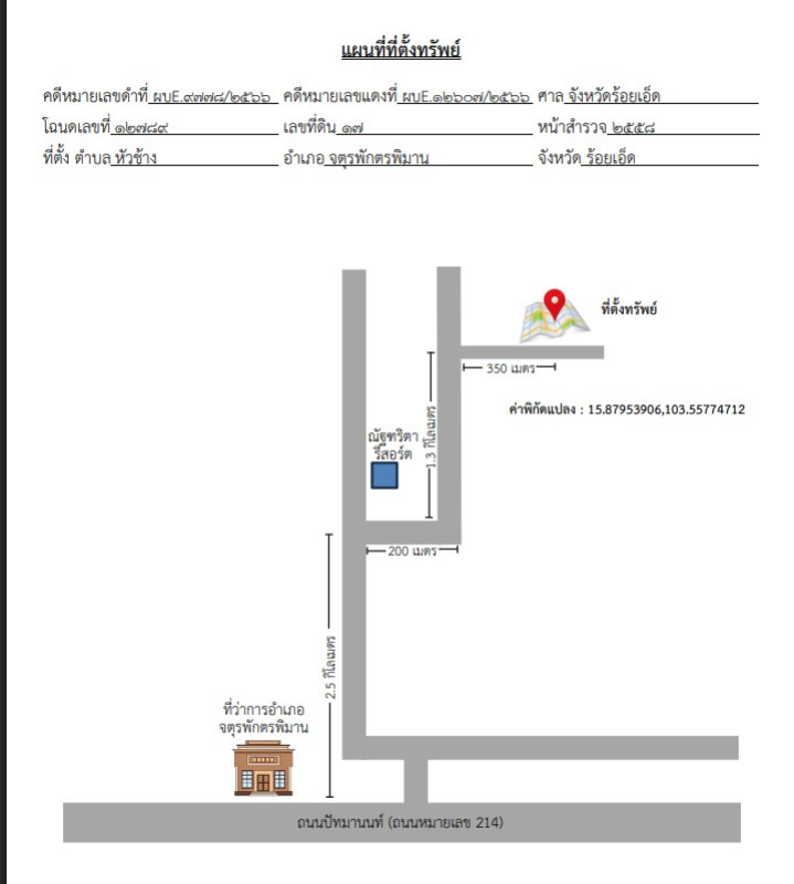 ศูนย์ข้อมูลฯ ได้ทำการตรวจสอบตำแหน่งที่ตั้งทรัพย์บนแผนที่ที่ปรากฎอยู่บนเว็บไซต์ โดยอาศัยข้อมูลจากแหล่งข้อมูลต่างๆ ที่เชื่อถือได้ เพื่อให้ตำแหน่งทรัพย์บนแผนที่ ใช้อ้างอิงท่านไปยังที่ตั้งของทรัพย์นั้นๆ โดยประมาณ ทั้งนี้ศูนย์ข้อมูลฯ ไม่สามารถยืนยันความถูกต้องของตำแหน่งทรัพย์ได้ ดังนั้น ทางศูนย์ข้อมูลฯ ขอสงวนสิทธิ์ไม่รับผิดชอบต่อข้อผิดพลาดทางตำแหน่งทรัพย์ที่เกิดขึ้นบนแผนที่ ผู้นำข้อมูลไปใช้พึงใช้วิจารณญาณและตรวจสอบตามความเหมาะสม