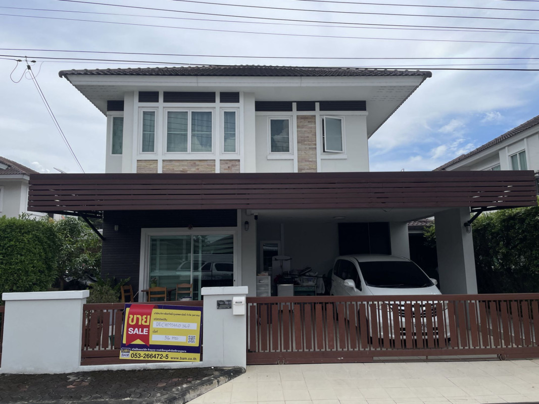 บ้านเดี่ยว 2 ชั้น พื้นที่ใช้สอย 120 ตรม. พร้อมสิ่งอำนวยความสะดวกครบครัน และพื้นที่ ส่วนกลาง อาทิ ฟิตเนส, สระว่ายน้ำ พร้อมระบบรักษาความปลอดภัย รปภ. 24 ชม. ประกอบด้วย 3 ห้องนอน 3 ห้องน้ำ