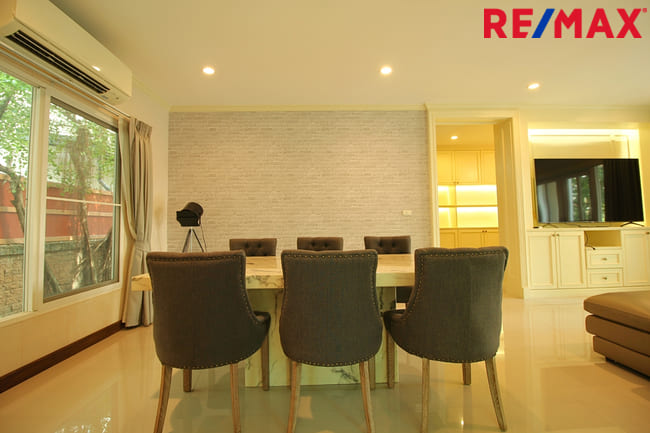 iii) Dining : ส่วนที่อยู่หลังบ้าน ปัจจุบันวางเฟอร์นิเจอร์ลอยตัวเป็นโต๊ะรับประทานอาหารขนาด 6 ที่นั่ง