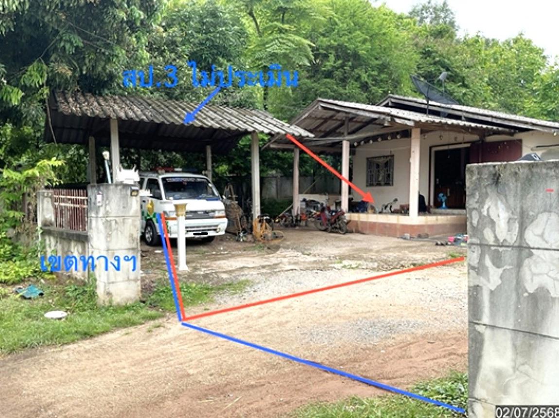 - บ้านพักอาศัยชั้นเดียว อายุอาคาร 23 ปี พื้นที่ใช้สอย 168 ตร.ม. 1 ห้องนอน 2 ห้องน้ำ - รั้ว อายุ 11 ปี **สิ่งปลูกสร้างบางส่วนไม่ประเมินมูลค่า เนื่องจากปลูกสร้างล้ำแนวเขตทางฯ ขอให้ผู้ซื้อตรวจสอบข้อมูลก่อนการเสนอซื้อ**