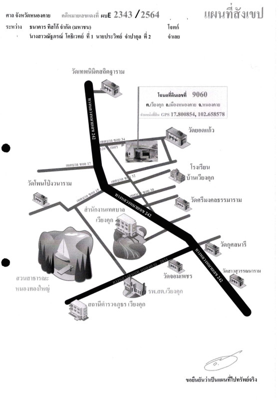 หมายเหตุ*: มีสิ่งปลูกสร้างเลขที่ 457 และเลขที่ 457/1 อยู่ โจทก์ไม่ประสงค์ยึดสิ่งปลูกสร้างดังกล่าวเนื่องจากไม่ใช่ทรัพย์ของจำเลย