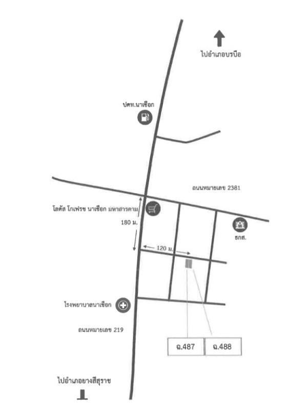 หมายเหตุ*: ขายรวมกับที่ดินโฉนดเลขที่ 488, ราคาประเมินรวม 1,880,168.-บาท