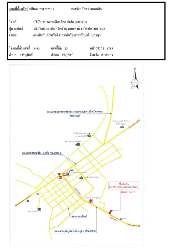 ศูนย์ข้อมูลฯ ได้ทำการตรวจสอบตำแหน่งที่ตั้งทรัพย์บนแผนที่ที่ปรากฎอยู่บนเว็บไซต์ โดยอาศัยข้อมูลจากแหล่งข้อมูลต่างๆ ที่เชื่อถือได้ เพื่อให้ตำแหน่งทรัพย์บนแผนที่ ใช้อ้างอิงท่านไปยังที่ตั้งของทรัพย์นั้นๆ โดยประมาณ ทั้งนี้ศูนย์ข้อมูลฯ ไม่สามารถยืนยันความถูกต้องของตำแหน่งทรัพย์ได้ ดังนั้น ทางศูนย์ข้อมูลฯ ขอสงวนสิทธิ์ไม่รับผิดชอบต่อข้อผิดพลาดทางตำแหน่งทรัพย์ที่เกิดขึ้นบนแผนที่ ผู้นำข้อมูลไปใช้พึงใช้วิจารณญาณและตรวจสอบตามความเหมาะสม