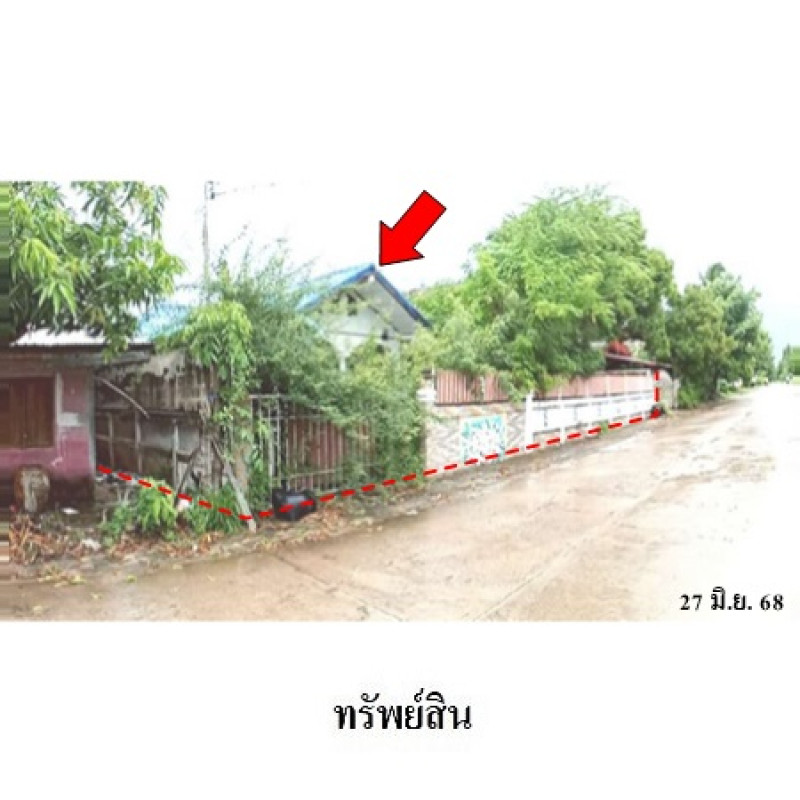 ที่ดินเป็นรูปคล้ายสี่เหลี่ยมผืนผ้า ขนาดแปลงที่ดินด้านทิศเหนือ ติดถนน กว้างประมาณ 21 ม. ลึกสุดประมาณ 21 ม.บสส.รับโอนกรรมสิทธิ์สิ่งปลูกสร้าง ระบุเป็น บ้านพักอาศัยตึกชั้นเดียว ไม่มีเลขที่, บ้านพักอาศัยตึกชั้นเดียว ไม่มีเลขที่ถนนผ่านหน้าทรัพย์สิน เป็นทางสาธารณประโยชน์ ผิวจราจรคอนกรีต กว้างประมาณ 5 ม. เขตทางกว้างประมาณ 6 ม.