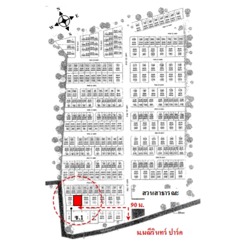 ที่ดินเป็นรูปสี่เหลี่ยมผืนผ้า ขนาดแปลงที่ดินด้านทิศใต้ ติดถนน กว้างประมาณ 12.5 ม. ลึกประมาณ 16 ม.บสส.รับโอนกรรมสิทธิ์สิ่งปลูกสร้าง ระบุเป็น บ้านพักอาศัยตึกสองชั้น เลขที่ 400/9, โรงจอดรถถนนผ่านหน้าทรัพย์สิน ได้แก่ ถนนหมู่บ้านมณีรินทร์ ปาร์ค ซอย 1 เป็นทางในโครงการจัดสรรที่ได้รับอนุญาตแล้ว ผิวจราจรคอนกรีต กว้างประมาณ 6 ม. เขตทางกว้างประมาณ 8 ม.