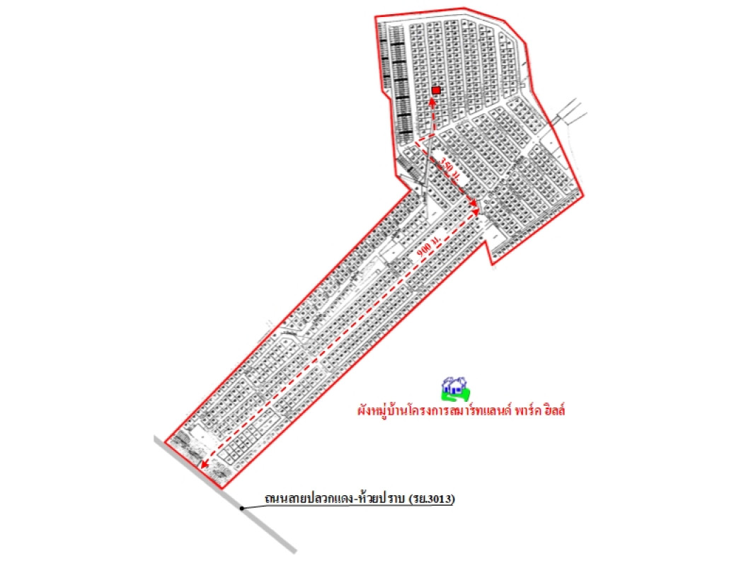 ที่ดินเป็นรูปสี่เหลี่ยมผืนผ้า ขนาดแปลงที่ดินด้านทิศตะวันตกติดถนน กว้างประมาณ 13.5 ม. ลึกประมาณ 16 ม.บสส. รับโอนกรรมสิทธิ์สิ่งปลูกสร้างระบุเป็นทาวน์เฮ้าส์ 2 ชั้น เลขที่ 88/1202ถนนผ่านหน้าทรัพย์สิน ได้แก่ ถนนหมู่บ้านสมาร์ทแลนด์ พาร์คฮิลล์ เป็นทางในโครงการจัดสรรที่ได้รับอนุญาตแล้ว ผิวจราจรคอนกรีต กว้างประมาณ 6 ม. เขตทางกว้างประมาณ 8 ม.