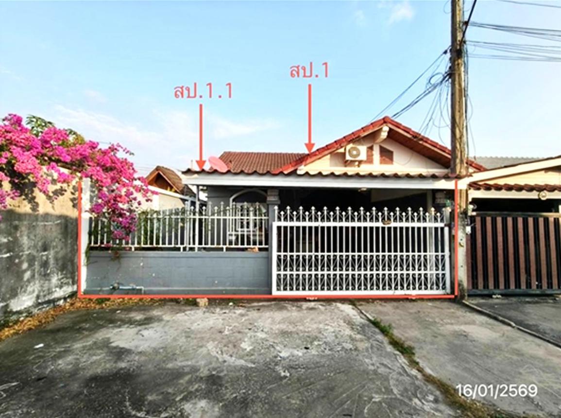 ทาวน์เฮ้าส์ชั้นเดียว อายุอาคาร 30 ปี พื้นที่ใช้สอย 97.75 ตร.ม. 2 ห้องนอน 1 ห้องน้ำ
