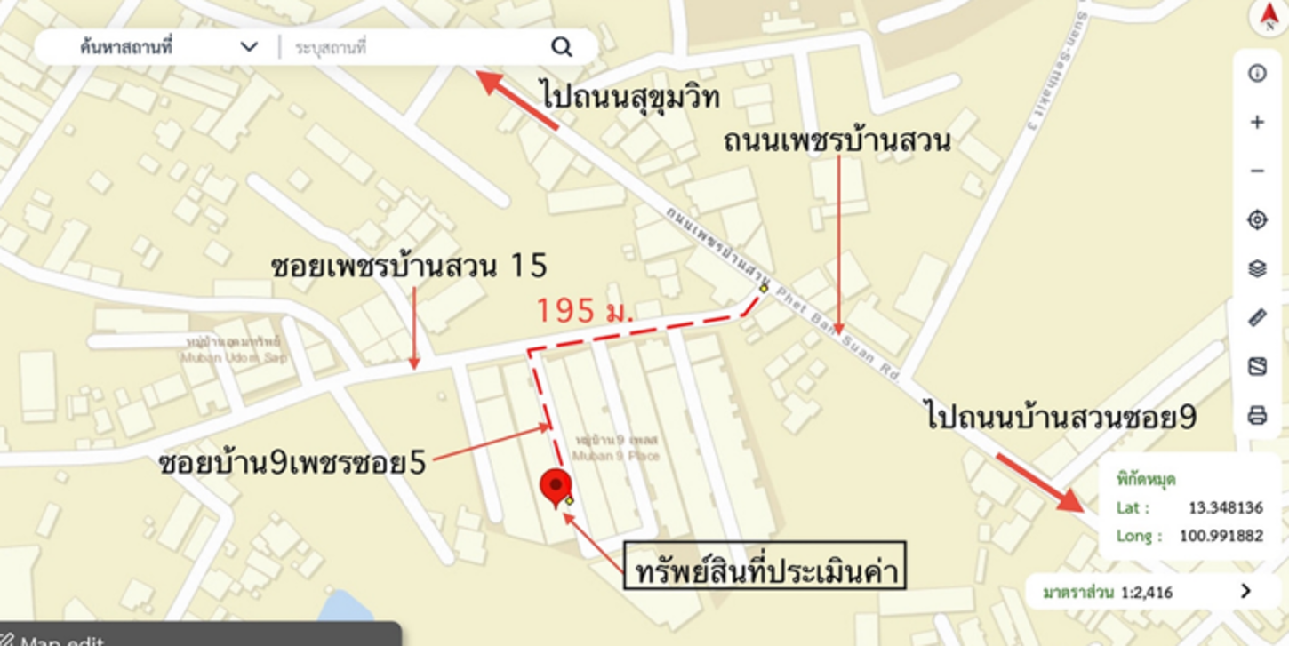 ศูนย์ข้อมูลฯ ได้ทำการตรวจสอบตำแหน่งที่ตั้งทรัพย์บนแผนที่ที่ปรากฎอยู่บนเว็บไซต์ โดยอาศัยข้อมูลจากแหล่งข้อมูลต่างๆ ที่เชื่อถือได้ เพื่อให้ตำแหน่งทรัพย์บนแผนที่ ใช้อ้างอิงท่านไปยังที่ตั้งของทรัพย์นั้นๆ โดยประมาณ ทั้งนี้ศูนย์ข้อมูลฯ ไม่สามารถยืนยันความถูกต้องของตำแหน่งทรัพย์ได้ ดังนั้น ทางศูนย์ข้อมูลฯ ขอสงวนสิทธิ์ไม่รับผิดชอบต่อข้อผิดพลาดทางตำแหน่งทรัพย์ที่เกิดขึ้นบนแผนที่ ผู้นำข้อมูลไปใช้พึงใช้วิจารณญาณและตรวจสอบตามความเหมาะสม