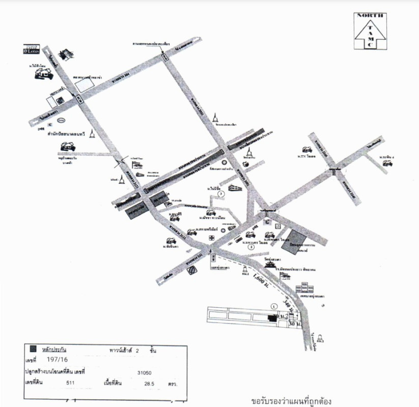 ศูนย์ข้อมูลฯ ได้ทำการตรวจสอบตำแหน่งที่ตั้งทรัพย์บนแผนที่ที่ปรากฎอยู่บนเว็บไซต์ โดยอาศัยข้อมูลจากแหล่งข้อมูลต่างๆ ที่เชื่อถือได้ เพื่อให้ตำแหน่งทรัพย์บนแผนที่ ใช้อ้างอิงท่านไปยังที่ตั้งของทรัพย์นั้นๆ โดยประมาณ ทั้งนี้ศูนย์ข้อมูลฯ ไม่สามารถยืนยันความถูกต้องของตำแหน่งทรัพย์ได้ ดังนั้น ทางศูนย์ข้อมูลฯ ขอสงวนสิทธิ์ไม่รับผิดชอบต่อข้อผิดพลาดทางตำแหน่งทรัพย์ที่เกิดขึ้นบนแผนที่ ผู้นำข้อมูลไปใช้พึงใช้วิจารณญาณและตรวจสอบตามความเหมาะสม