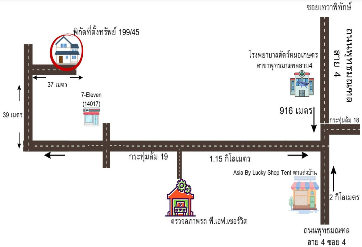 ศูนย์ข้อมูลฯ ได้ทำการตรวจสอบตำแหน่งที่ตั้งทรัพย์บนแผนที่ที่ปรากฎอยู่บนเว็บไซต์ โดยอาศัยข้อมูลจากแหล่งข้อมูลต่างๆ ที่เชื่อถือได้ เพื่อให้ตำแหน่งทรัพย์บนแผนที่ ใช้อ้างอิงท่านไปยังที่ตั้งของทรัพย์นั้นๆ โดยประมาณ ทั้งนี้ศูนย์ข้อมูลฯ ไม่สามารถยืนยันความถูกต้องของตำแหน่งทรัพย์ได้ ดังนั้น ทางศูนย์ข้อมูลฯ ขอสงวนสิทธิ์ไม่รับผิดชอบต่อข้อผิดพลาดทางตำแหน่งทรัพย์ที่เกิดขึ้นบนแผนที่ ผู้นำข้อมูลไปใช้พึงใช้วิจารณญาณและตรวจสอบตามความเหมาะสม