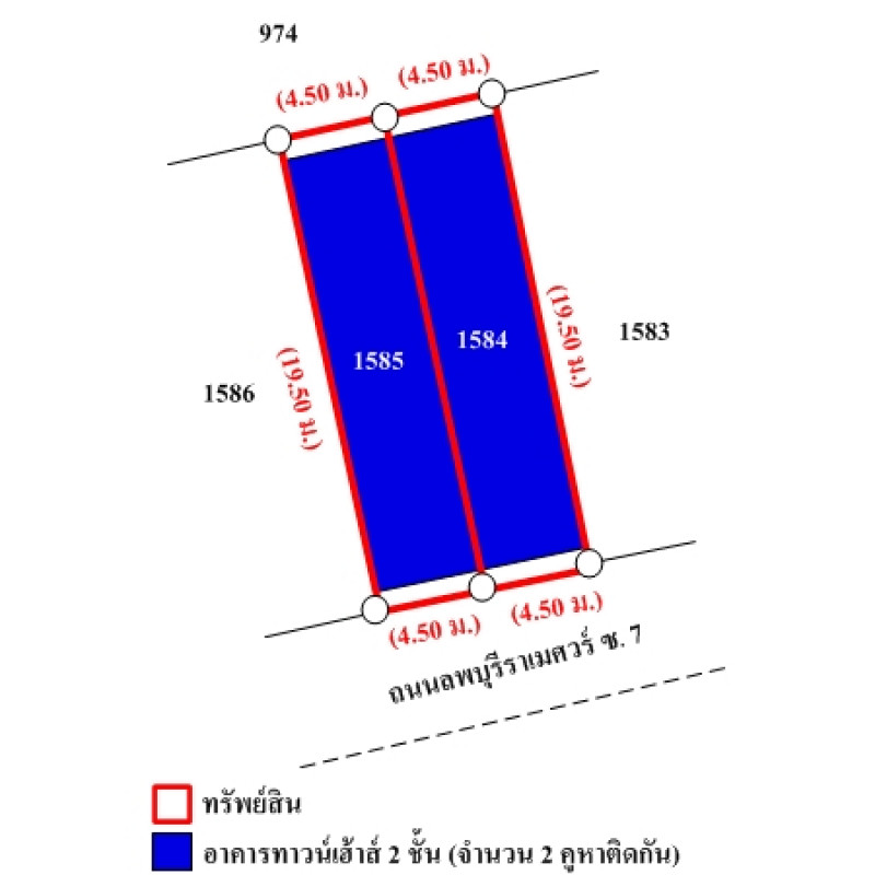 ที่ดินเป็นรูปสี่เหลี่ยมผืนผ้า ขนาดแปลงที่ดินด้านทิศใต้ติดถนน กว้างประมาณ 9 ม. ลึกประมาณ 19 ม.บสส. รับโอนกรรมสิทธิ์สิ่งปลูกสร้างระบุเป็นทาวน์เฮ้าส์ 2 ชั้น เลขที่ 148/36, 148/37 ถนนผ่านหน้าทรัพย์สิน ได้แก่ ซอย 7 ลพบุรีราเมศร์ เป็นทางสาธารณประโยชน์ ผิวจราจรลาดยาง กว้างประมาณ 6 ม. เขตทางกว้างประมาณ 6 ม.